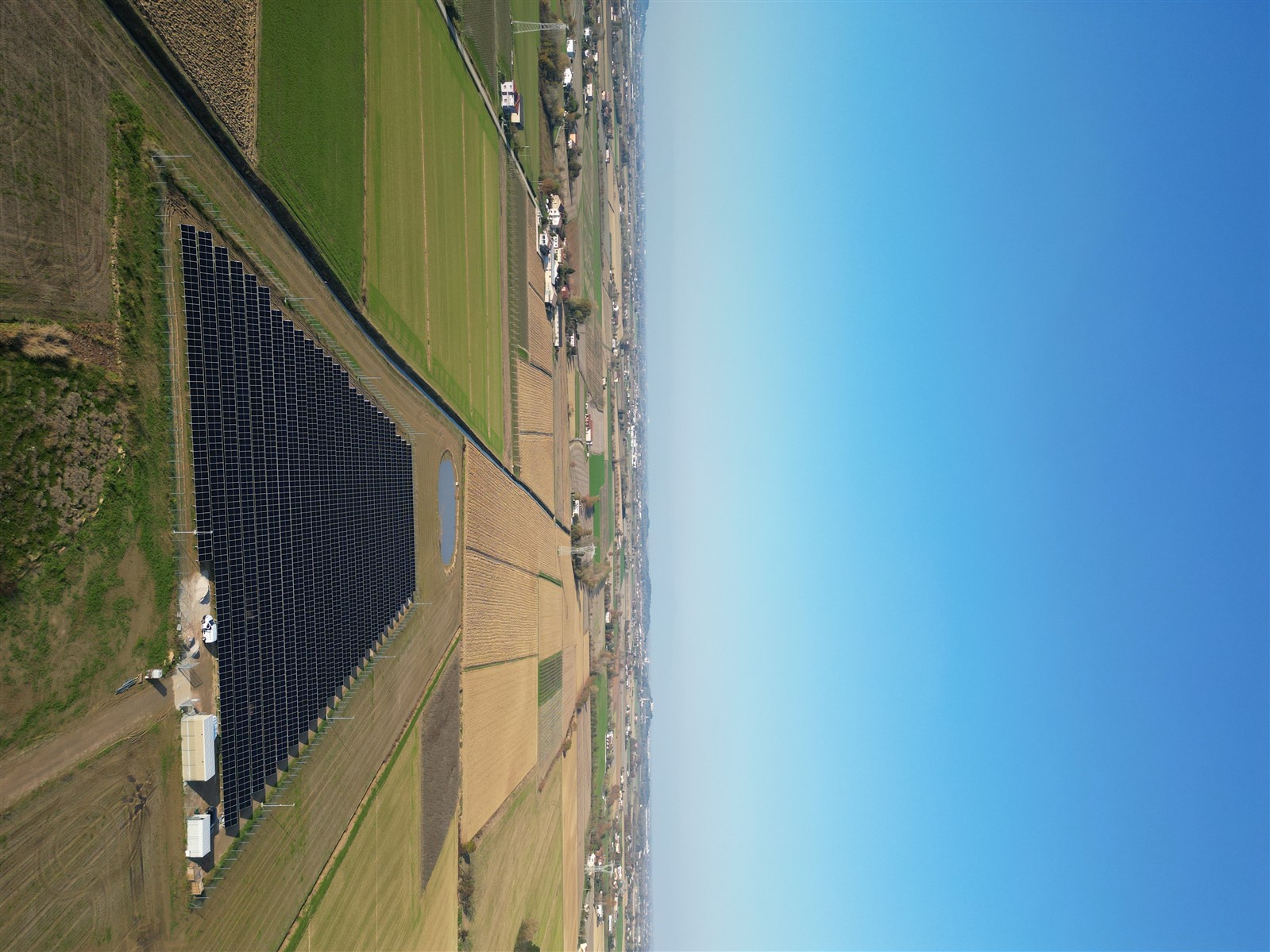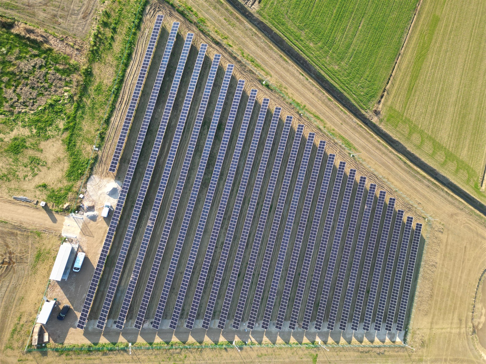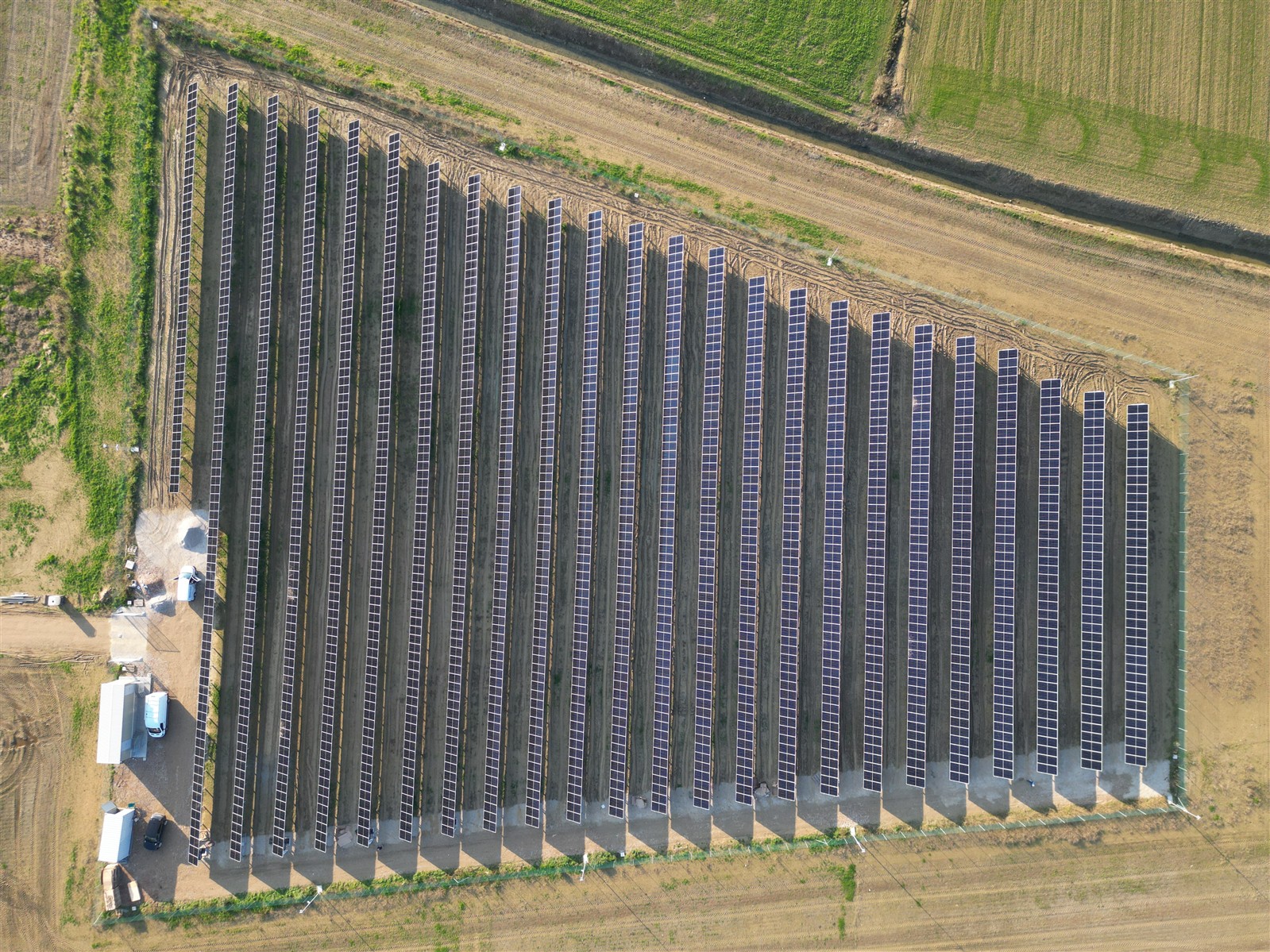 The photovoltaic generator is composed of 1,550 bifacial monocrystalline silicon photovoltaic modules with a power of 645 Wp each. The modules are connected in series and parallel to achieve the optimal voltage and current at the input of the respective inverters, as indicated in the attached wiring diagram. The connection cables between the modules and the inverter will be solar-specific cables for these applications, with a cross-section of no less than 6 mm².